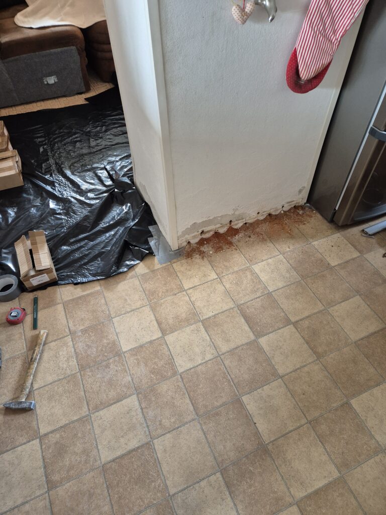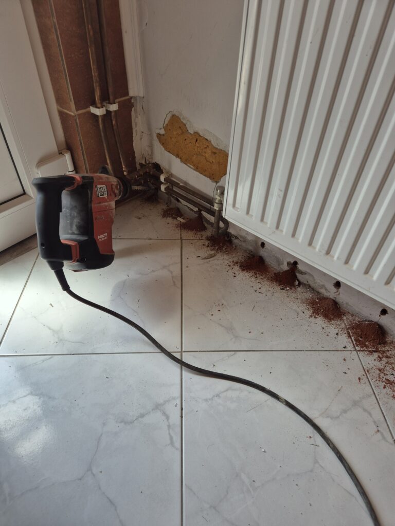 Zde na rodinném domě si nás majitel zavolal na pomoc se vzlínající vlhkostí, která ho trápí i přesto, že před časem řešil tento problém mechanickým podřezáním a vložením plastových desek od firmy zabývající se sanací.