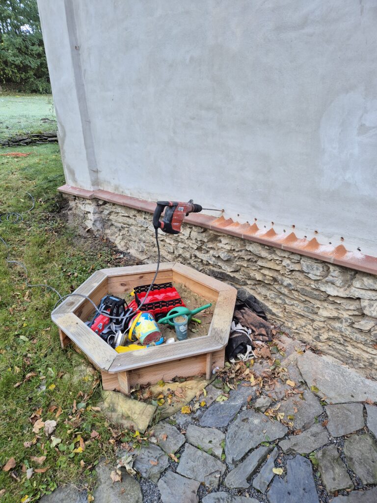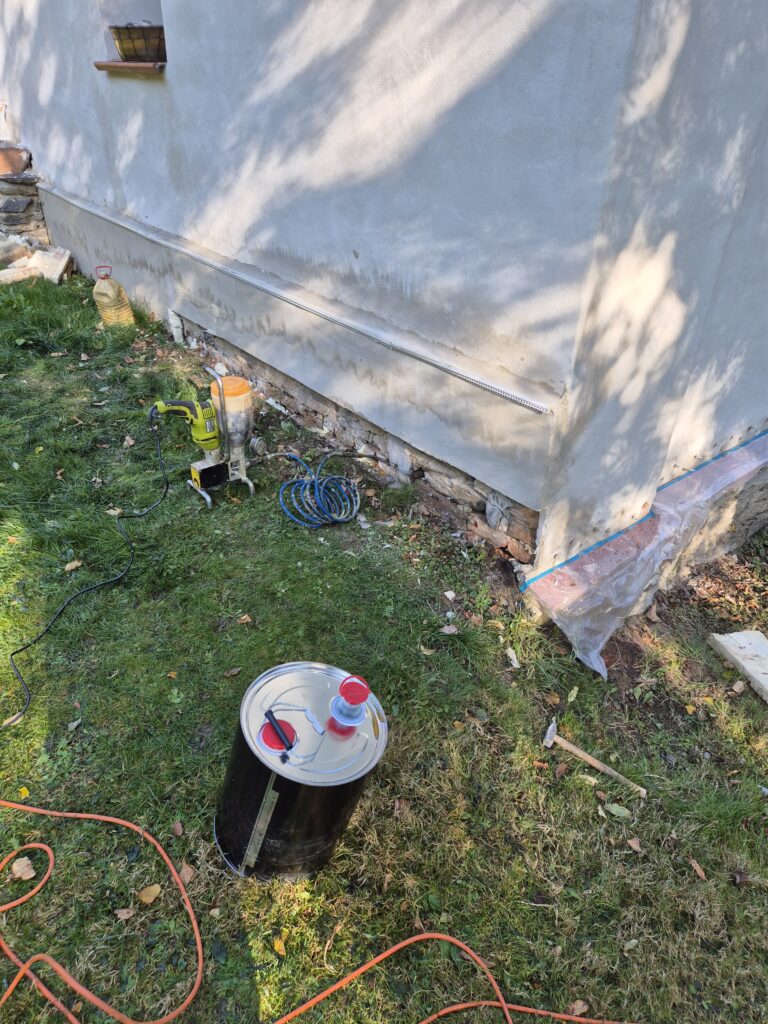 Opět jsme zpátky na rodinném domě, kde jsme před rokem provedli tlakovou injektáž polyuretanovou pryskyřicí a tentokrát nás majitelka kontaktovala s problémem na druhé straně domu.
