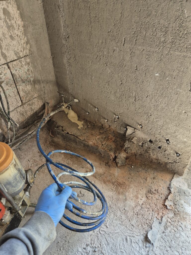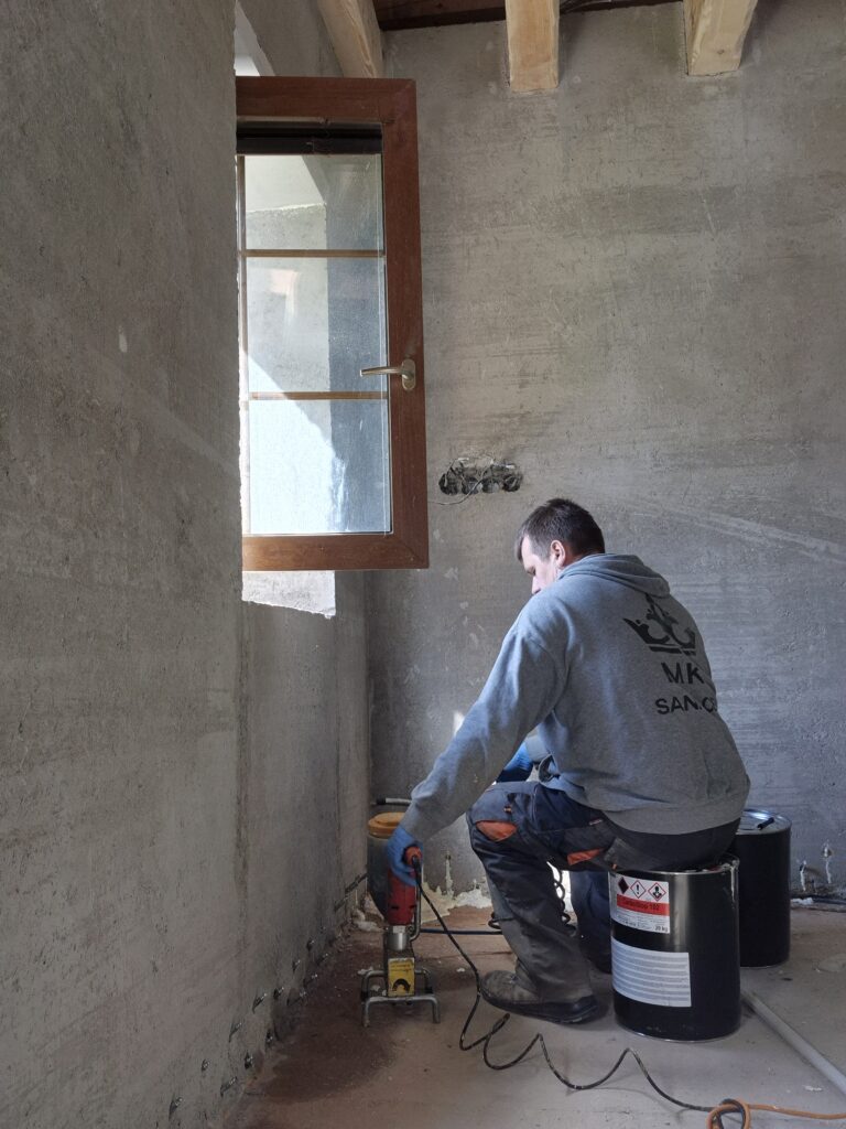 Na rodinném domě v rekonstrukci jsme provedli tlakovou injektáž polyuretanovou pryskyřicí proti vzlínající vlhkosti a tlakové vodě. 💪💪👍👍