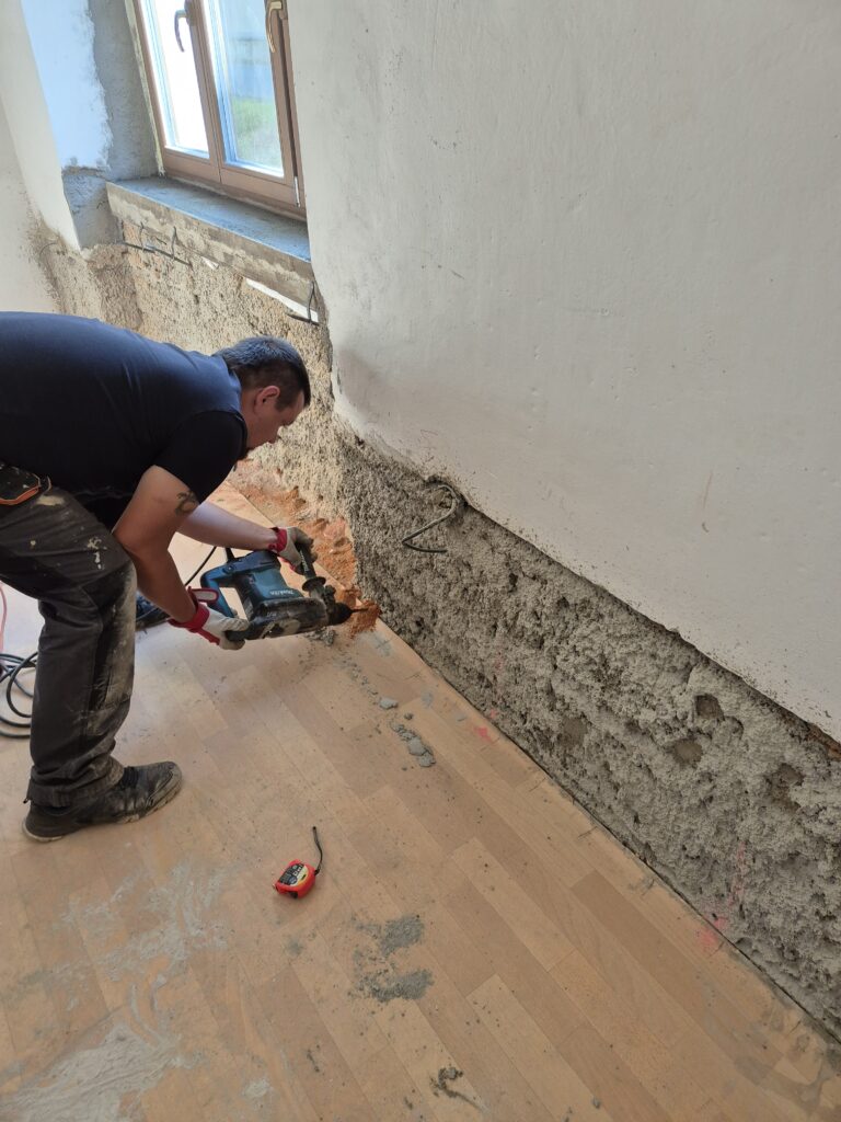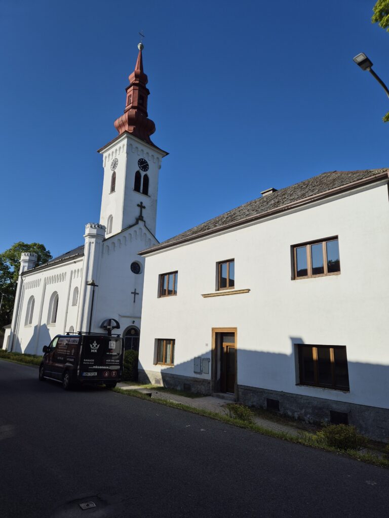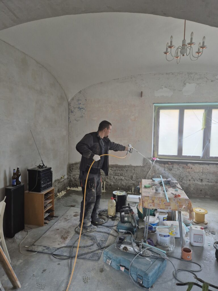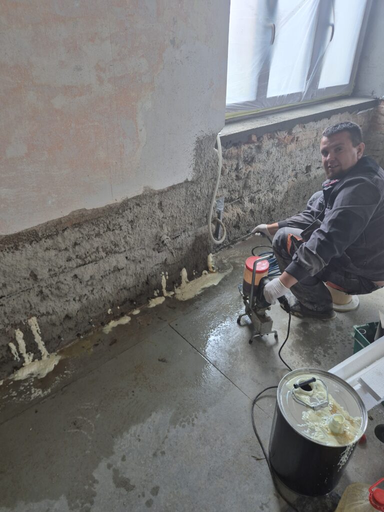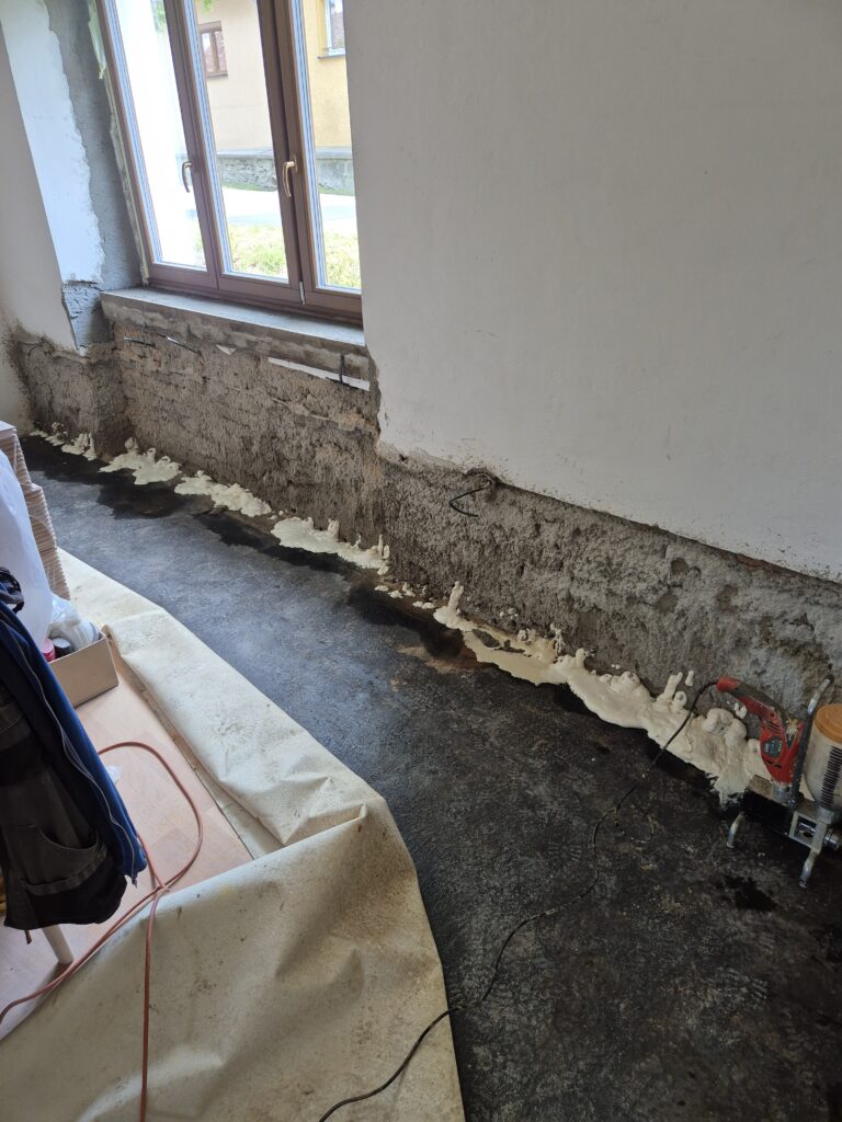 Zde v krásné obci Třeština, na bývalé faře, jsme provedli tlakovou injektáž. K tomu jsme použili polyuretanovou pryskyřici k zastavení vzlínající vlhkosti, která se objevila na obvodových zdech domu.