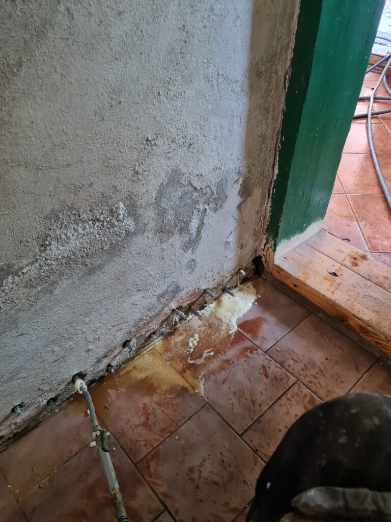 Na fotografiích můžete vidět tlakovou injektáž proti vzlínající vlhkosti a tlakové vodě. Použili jsme polyuretanovou pryskyřici a na naší práci a použitý materiál garantovali záruku 30 let. Následný úklid je samozřejmostí. 💪💪👍👍
