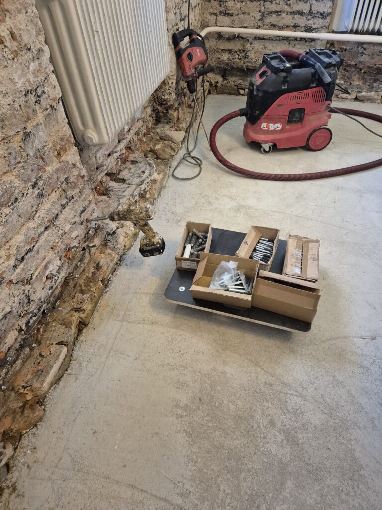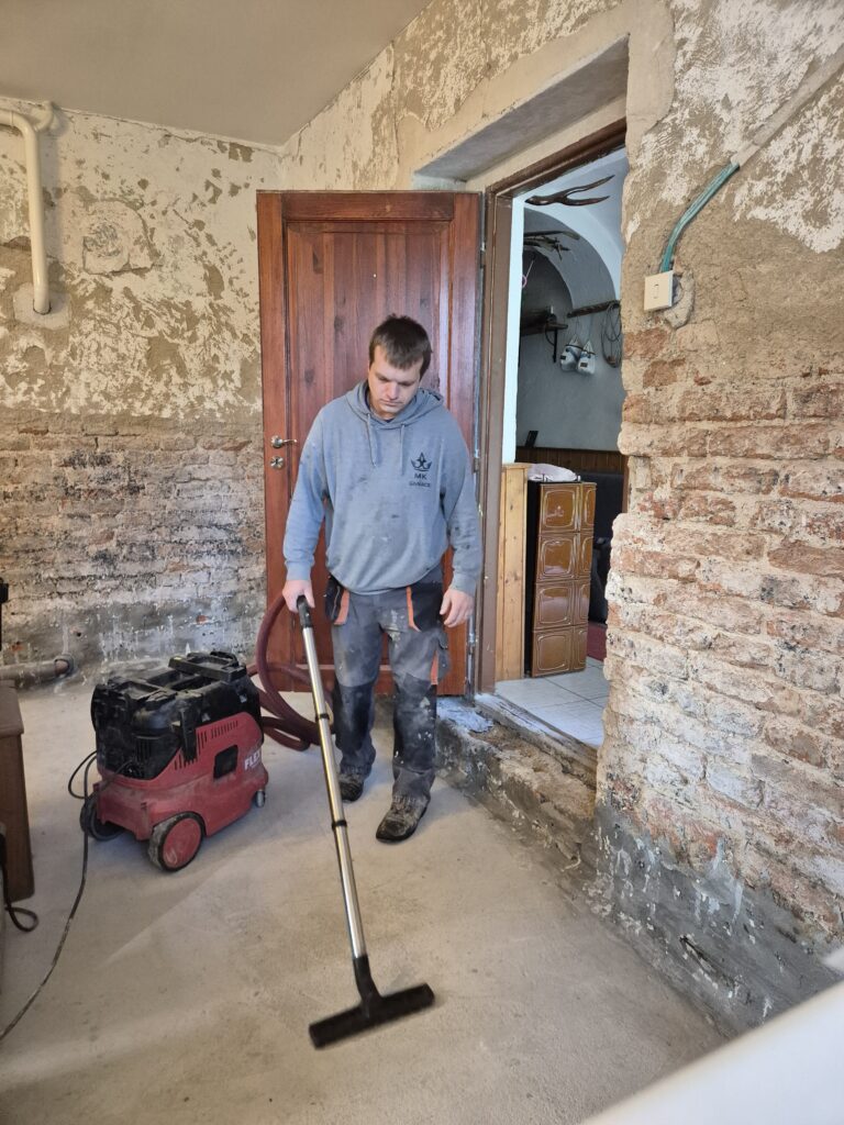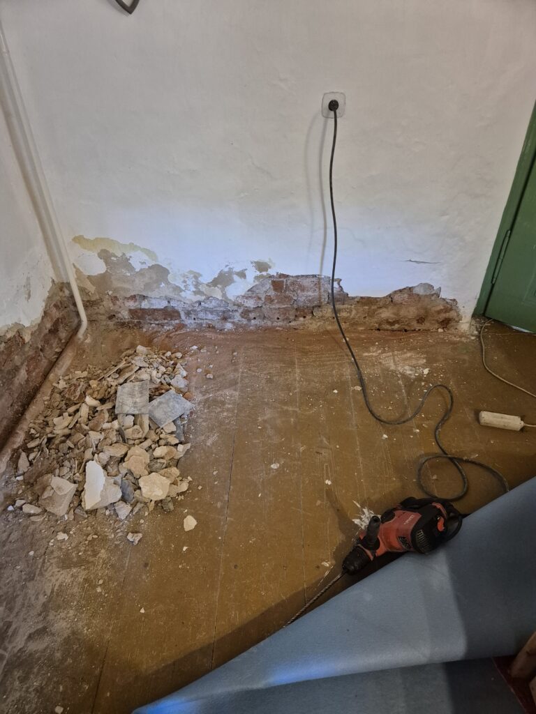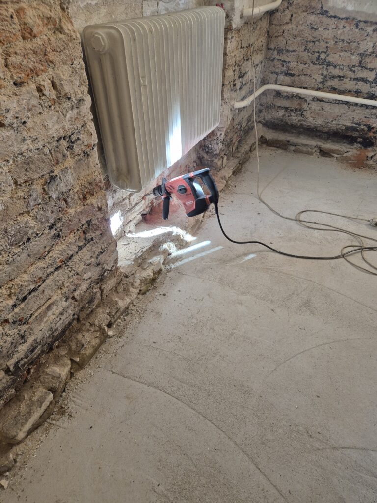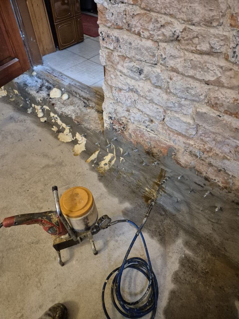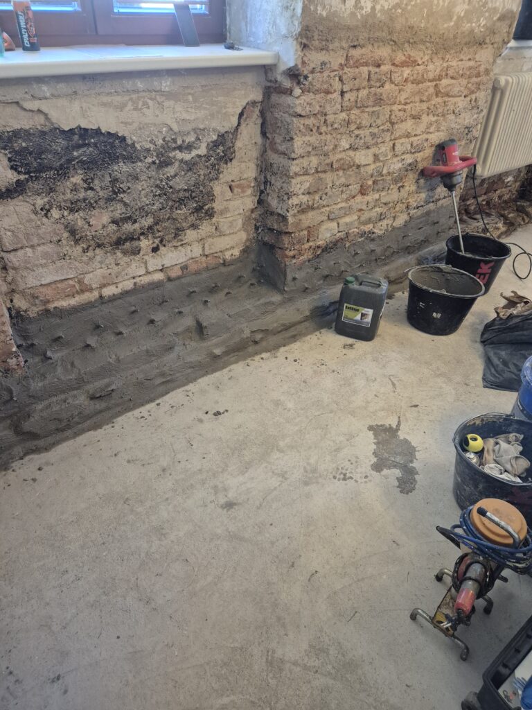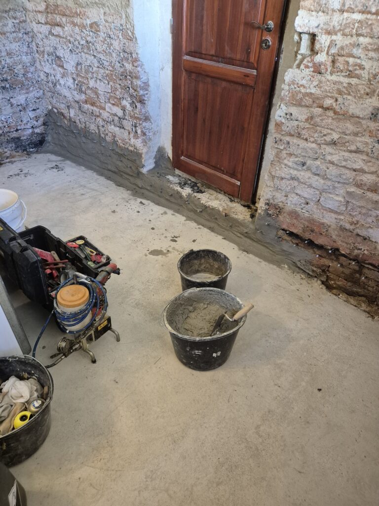 Zastavení vzlínající vlhkosti a tlakové vody v rodinném domě. Omítka už byla osekaná a tak jsme museli provést drobné zednické práce, aby naše akce vyšla na 💯%👍👍💪💪