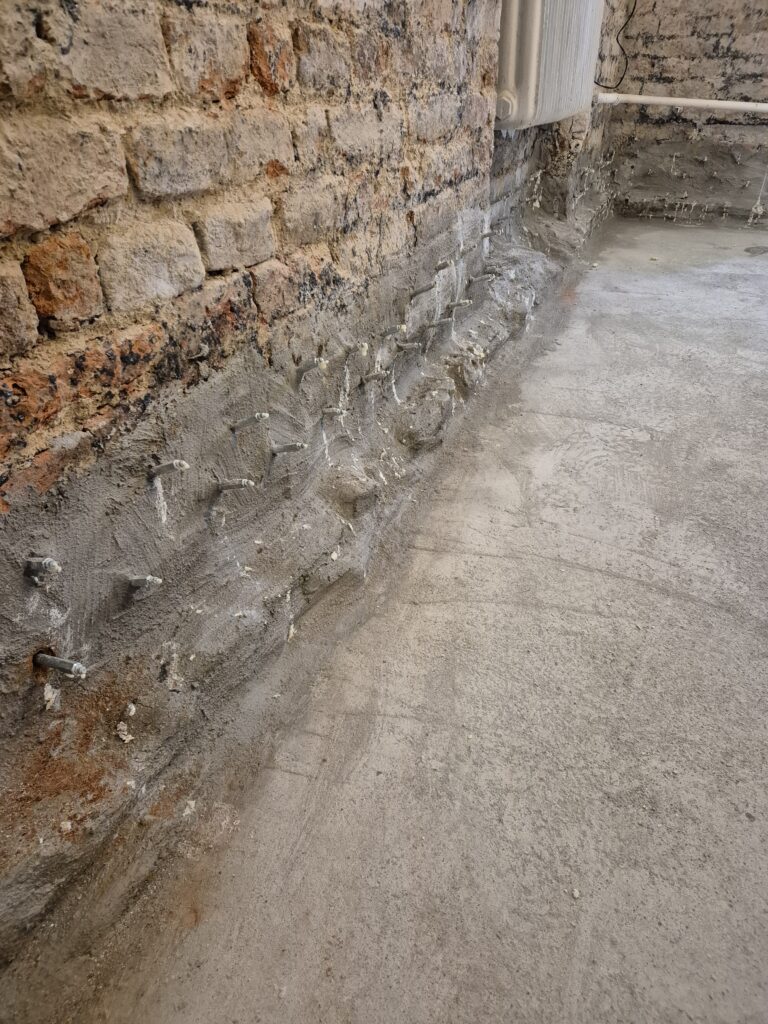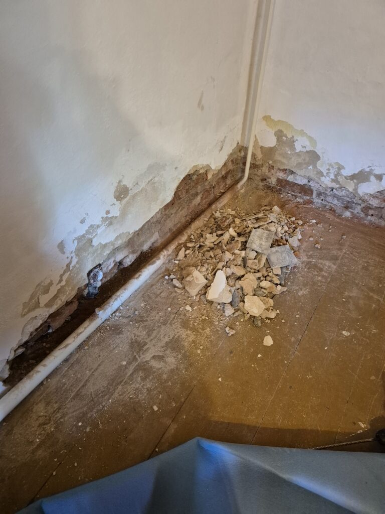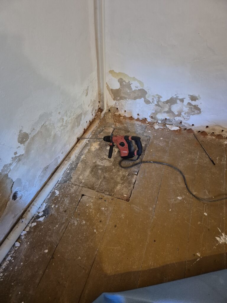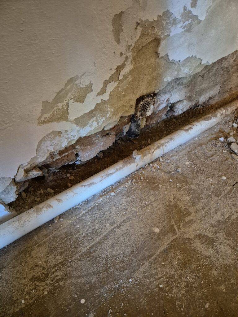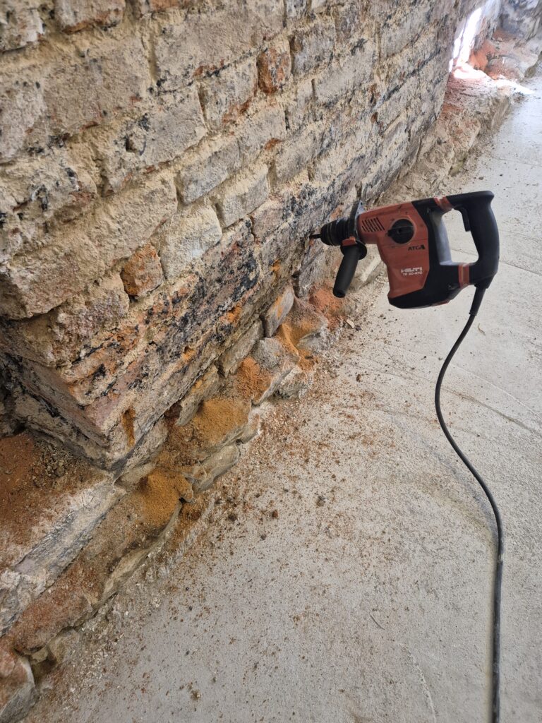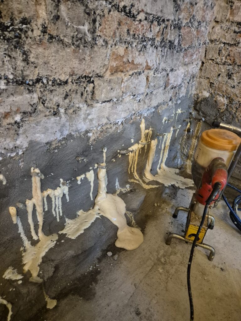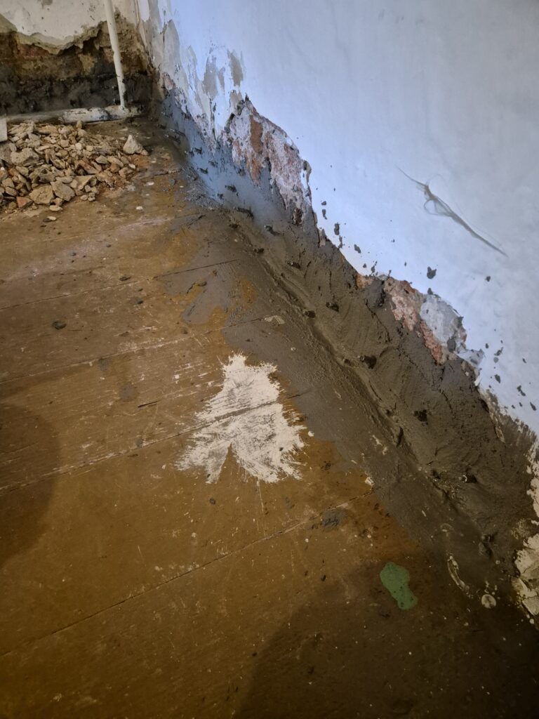 Zastavení vzlínající vlhkosti a tlakové vody v rodinném domě. Omítka už byla osekaná a tak jsme museli provést drobné zednické práce, aby naše akce vyšla na 💯%👍👍💪💪