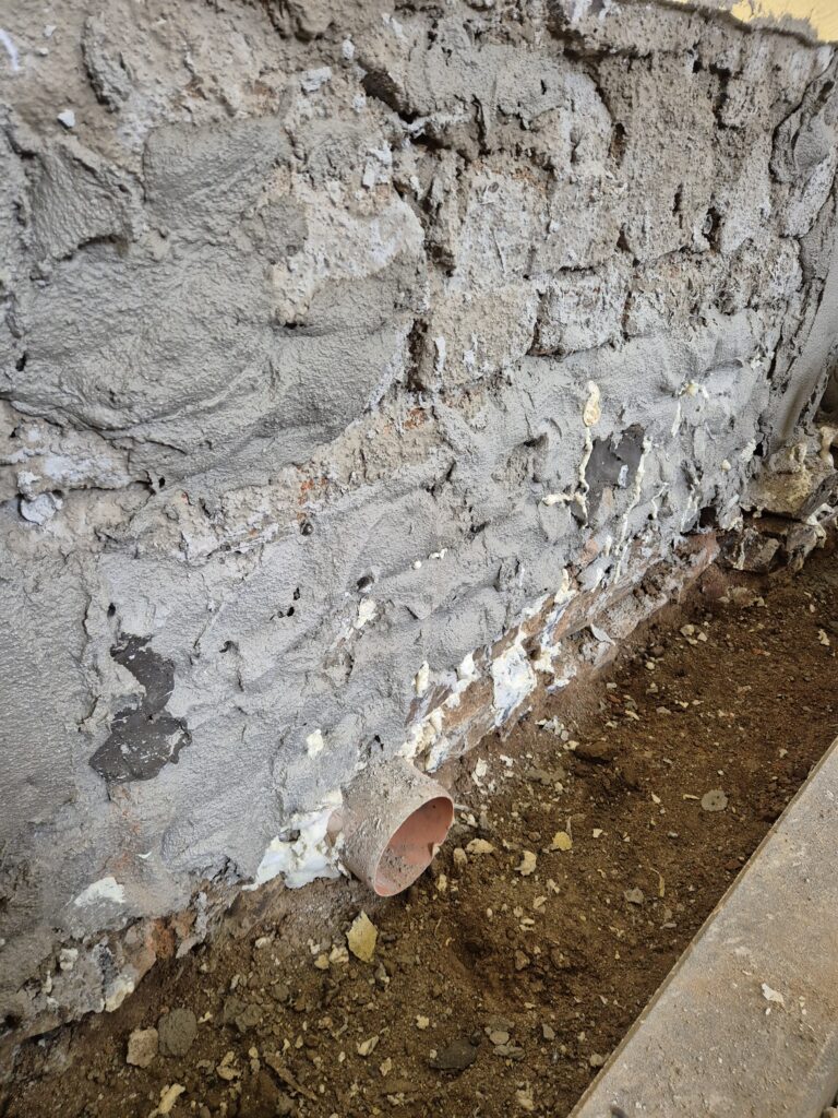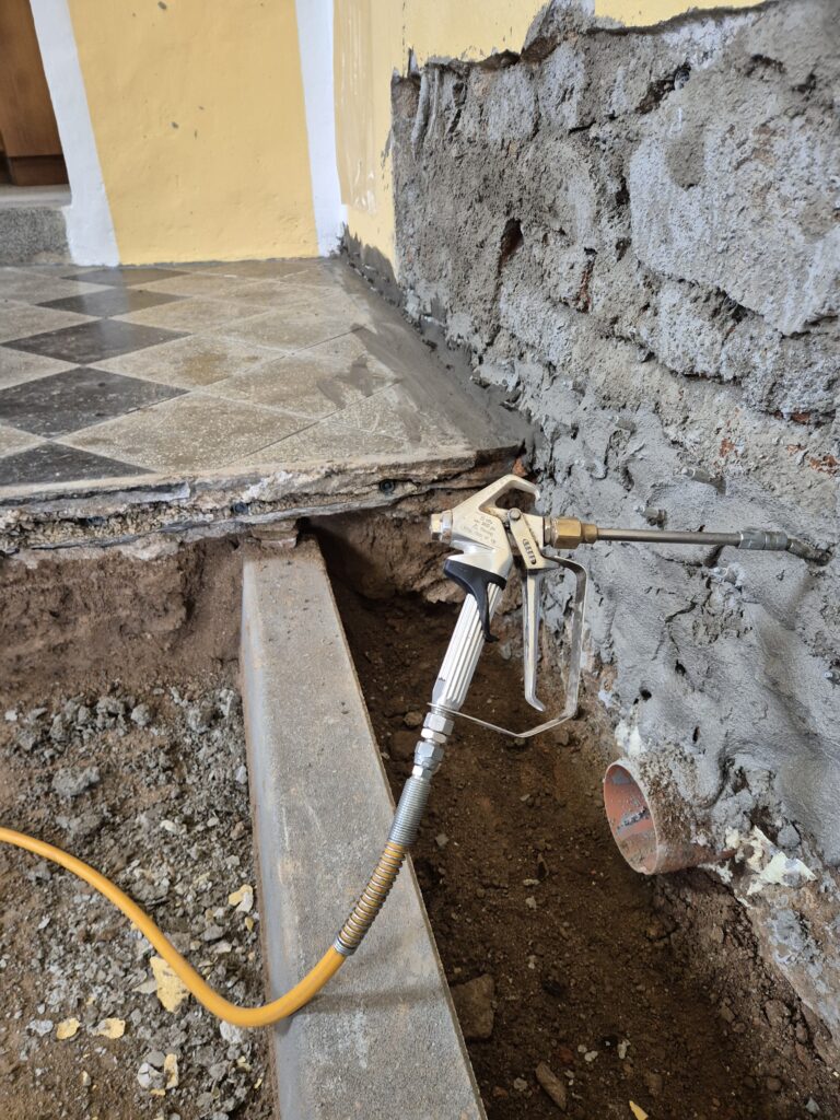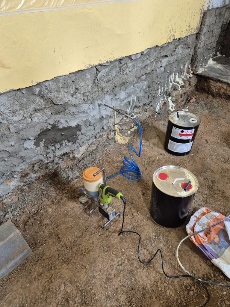 Momentálně provádíme tlakovou injektáž polyuretanovou pryskyřicí proti vzlínající vlhkosti a tlakové vodě. Aby vše bylo tak jak má, museli jsme stěnu a hlavně místo kolem injektáže přeomítat. 💪💪👍👍